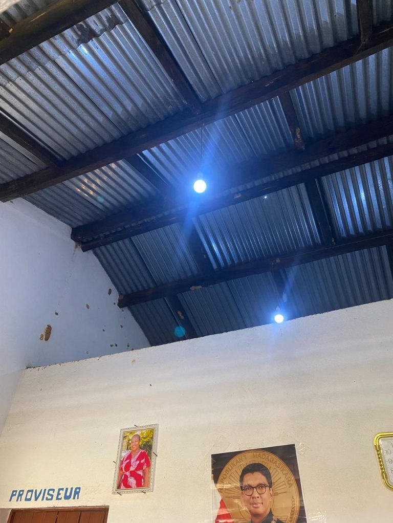 Nous avons de l’éclairage dans les dix classes du lycée du Faraony à Ampasimanjeva Madagascar pour environ 400 élèves.