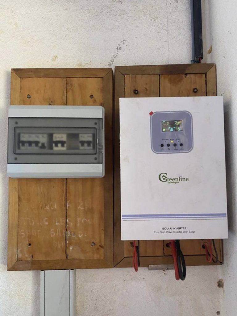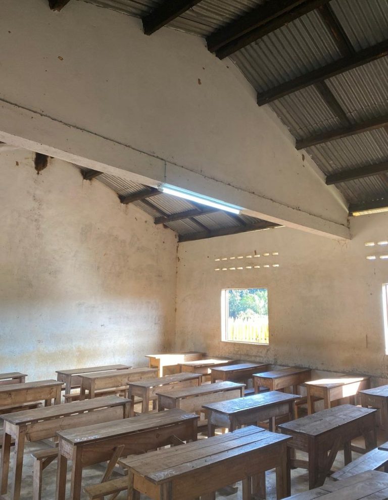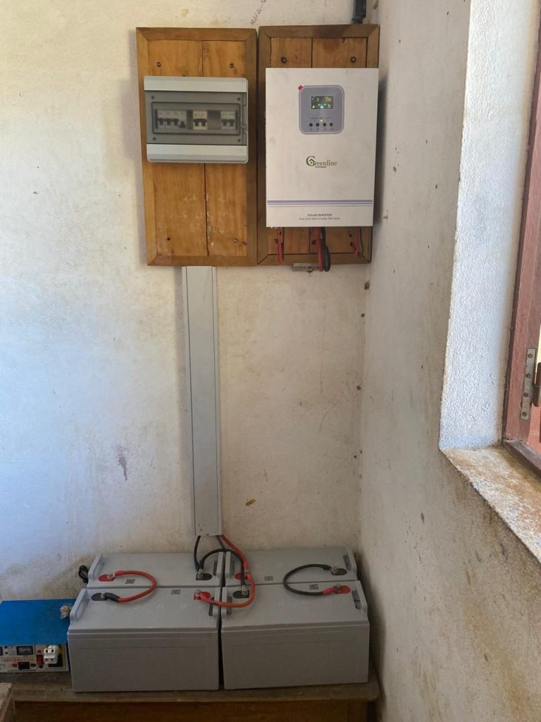 Grâce au soutien de l’association Sulidarità de l’AFC UMANI en Corse, à une bonne amie vétérinaire retraitée, et à plusieurs donateurs privés, des marraines et des parrains, nous avons pu installer un système solaire pour l’éclairage. C’est quelque chose d’important qu’on ne peut comprendre qu’en ayant vécu sous les tropiques où la nuit tombe à 18h et que les étudiants s’éclairent à la bougie en classe.