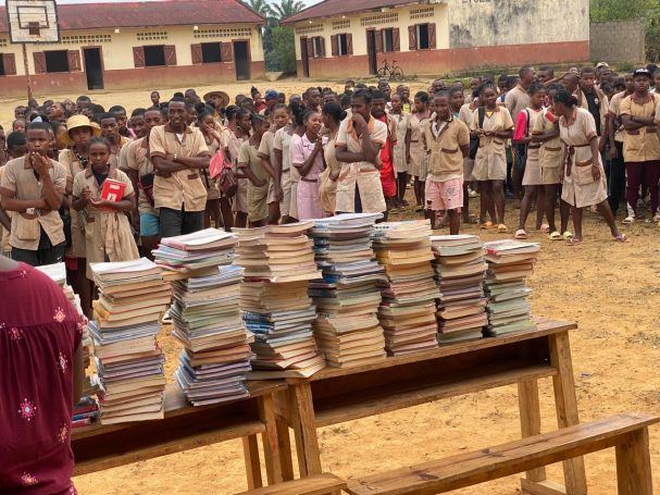 * Remise de deux tonnes de manuels scolaires pour le lycée Faraony en provenance des établissements français qui jettent les anciens programmes scolaires.